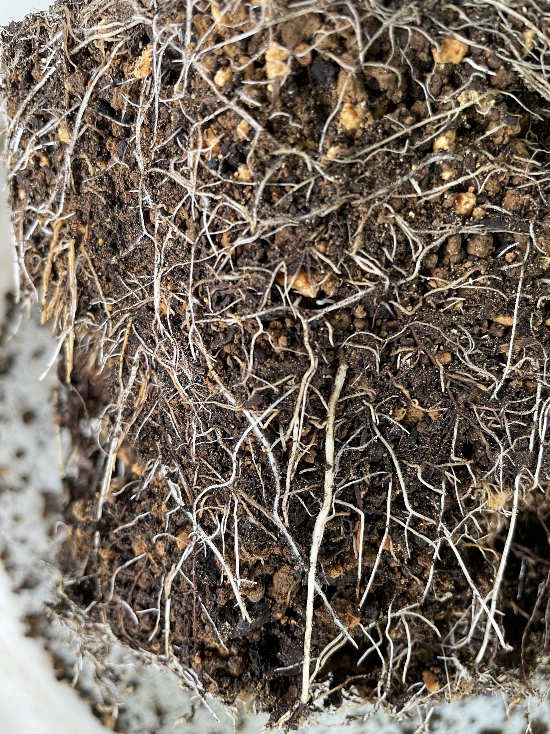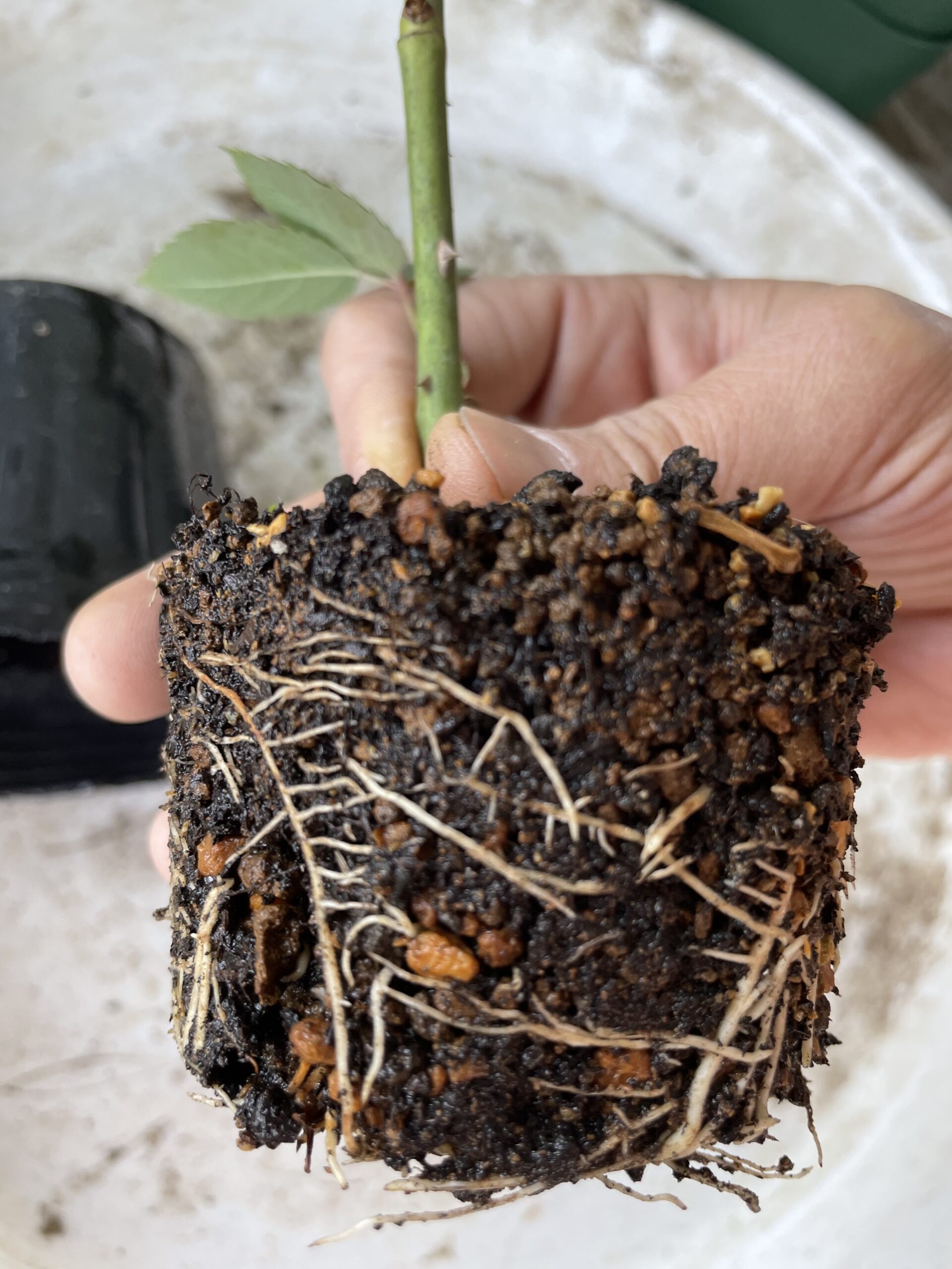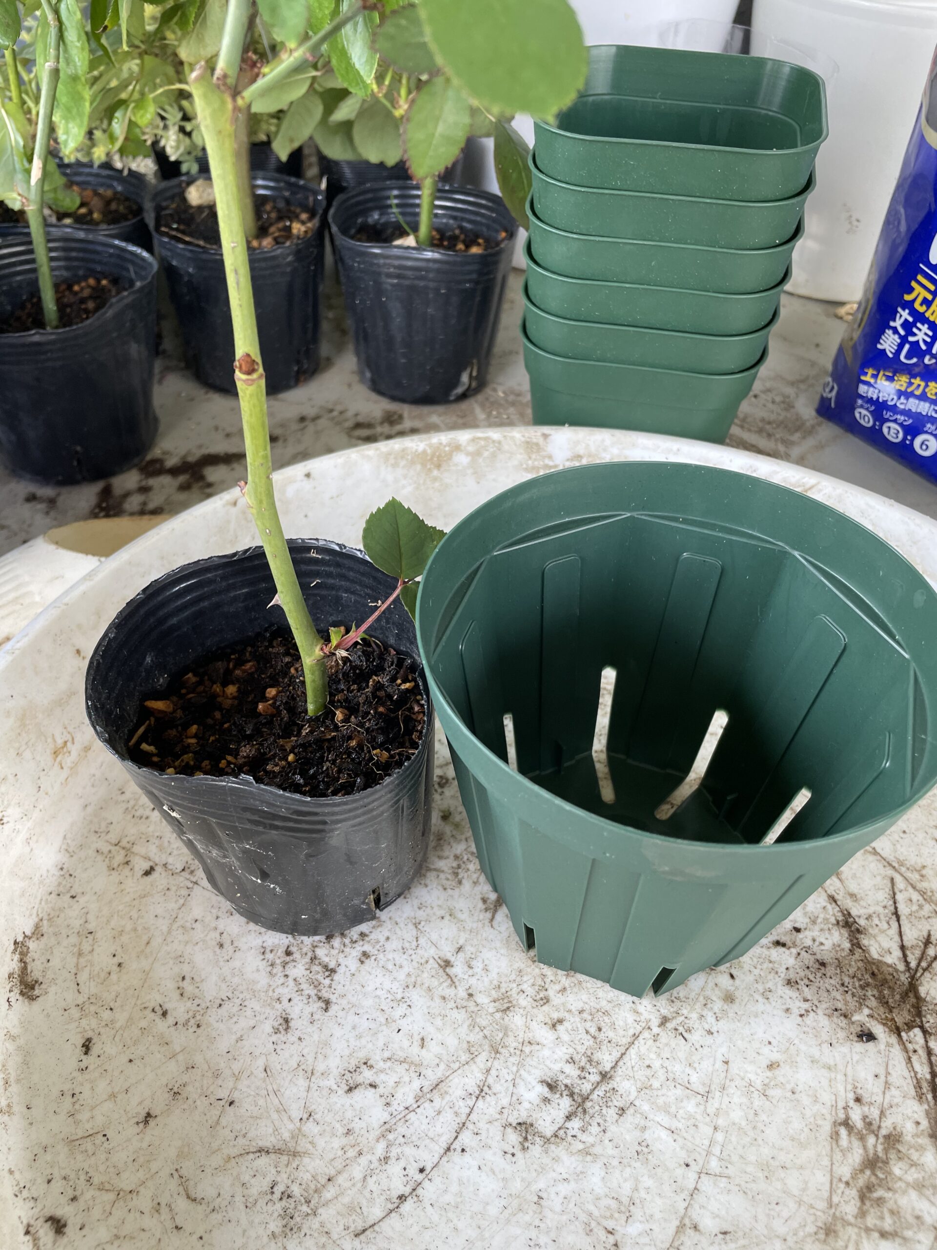 私はポット苗から鉢増しする時、スリット鉢に移します、スリット鉢は、底面と側面にも深いスリットが入っているプラスティック製の鉢です。鉢の大きさ(4号~10号)、長さもロングポットがあったりと種類が色々展開されているので、使いやすく