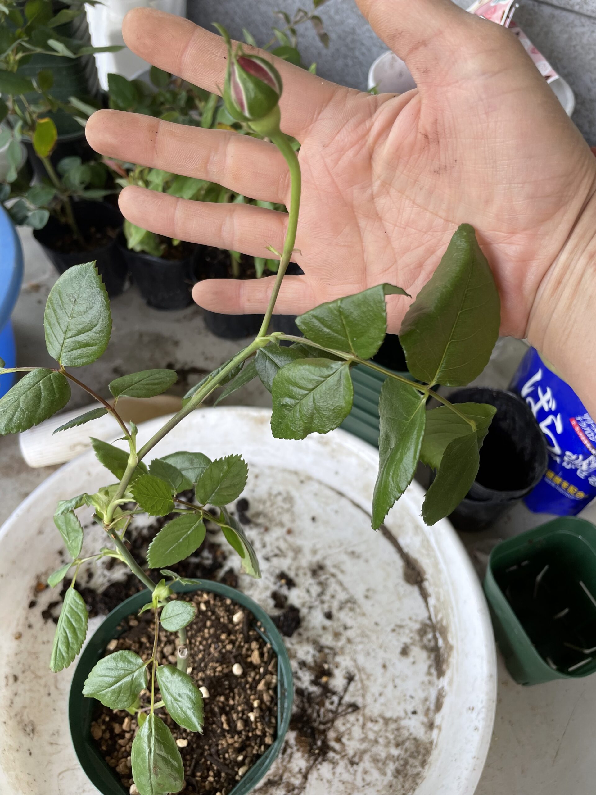 ☆発根した挿し木苗はいきなり大きな鉢に植えず、最初は小さいポットに植え、水がすぐに乾くようになってきたら鉢が小さくなってきているので、また一回りだけ大きな鉢に植え替える。