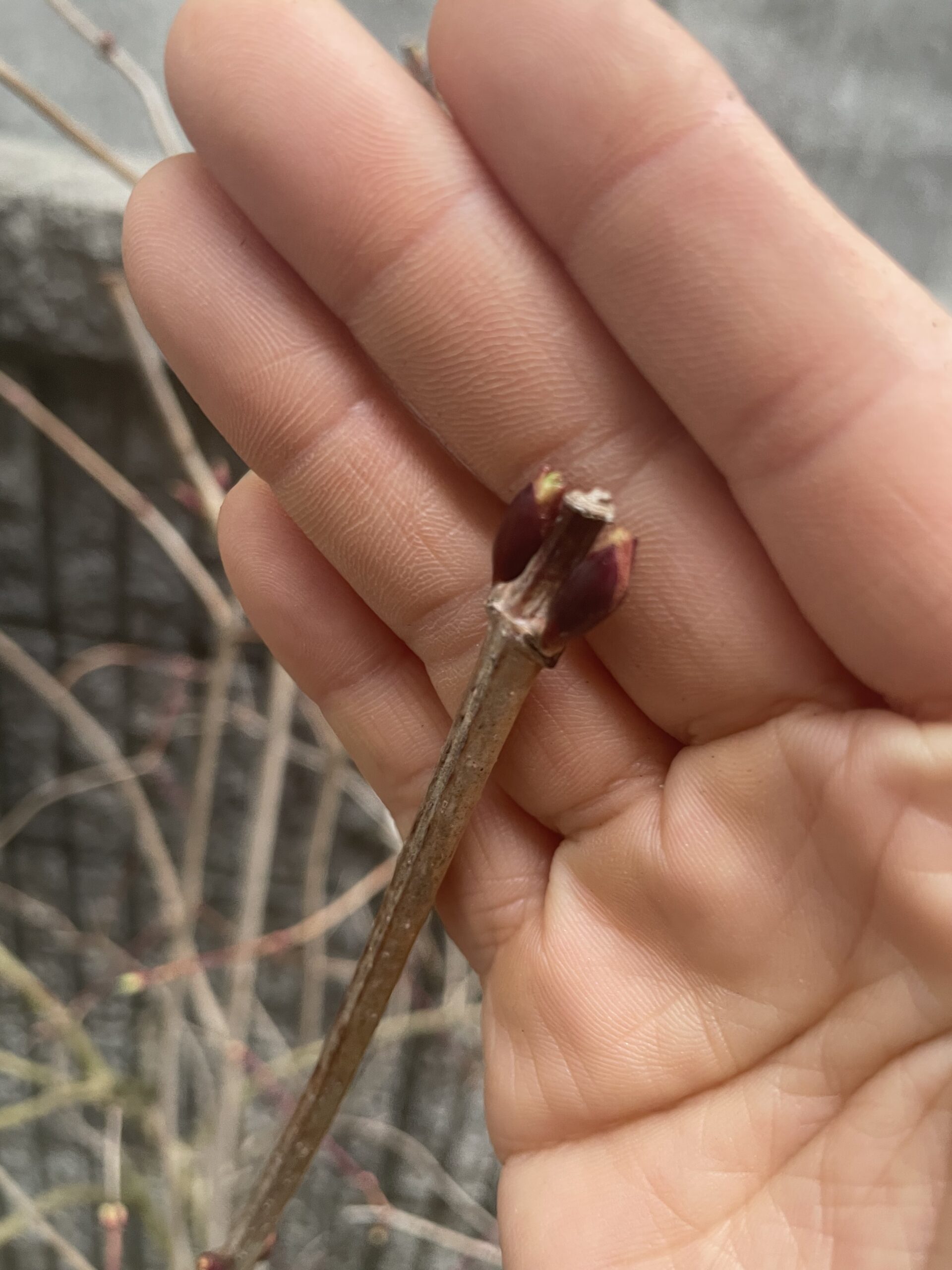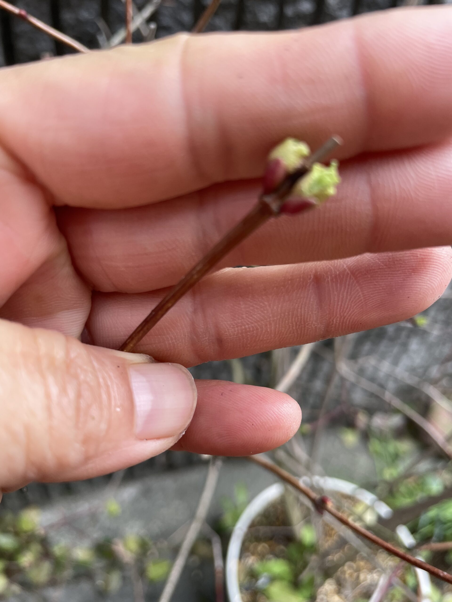 葉っぱは、まだ展開していませんが、小さな赤い芽だけが、ちょこっと膨らんできています。