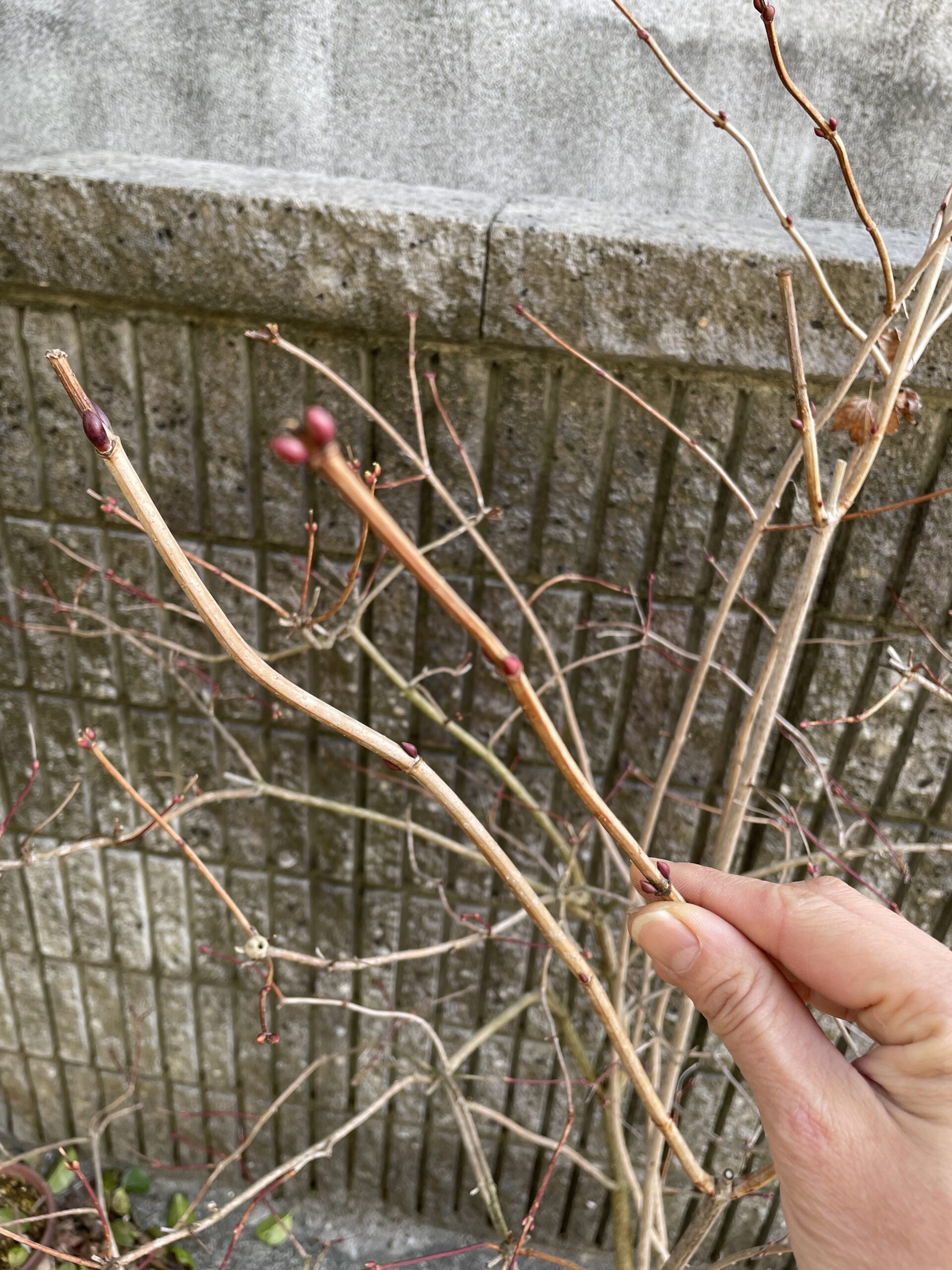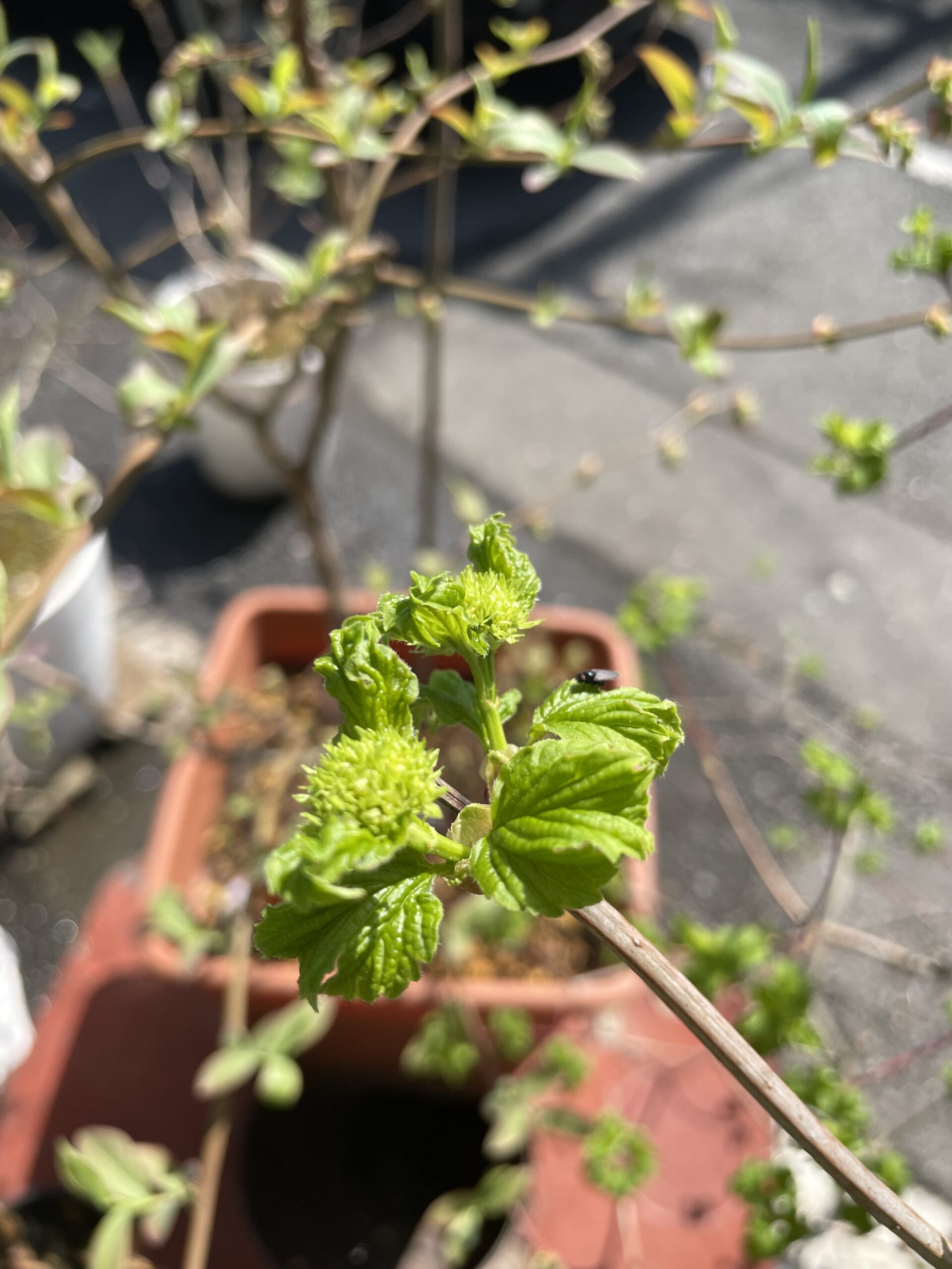 下の写真は、3月上旬に撮影した、私の鉢植えのビバーナムスノーボールです。