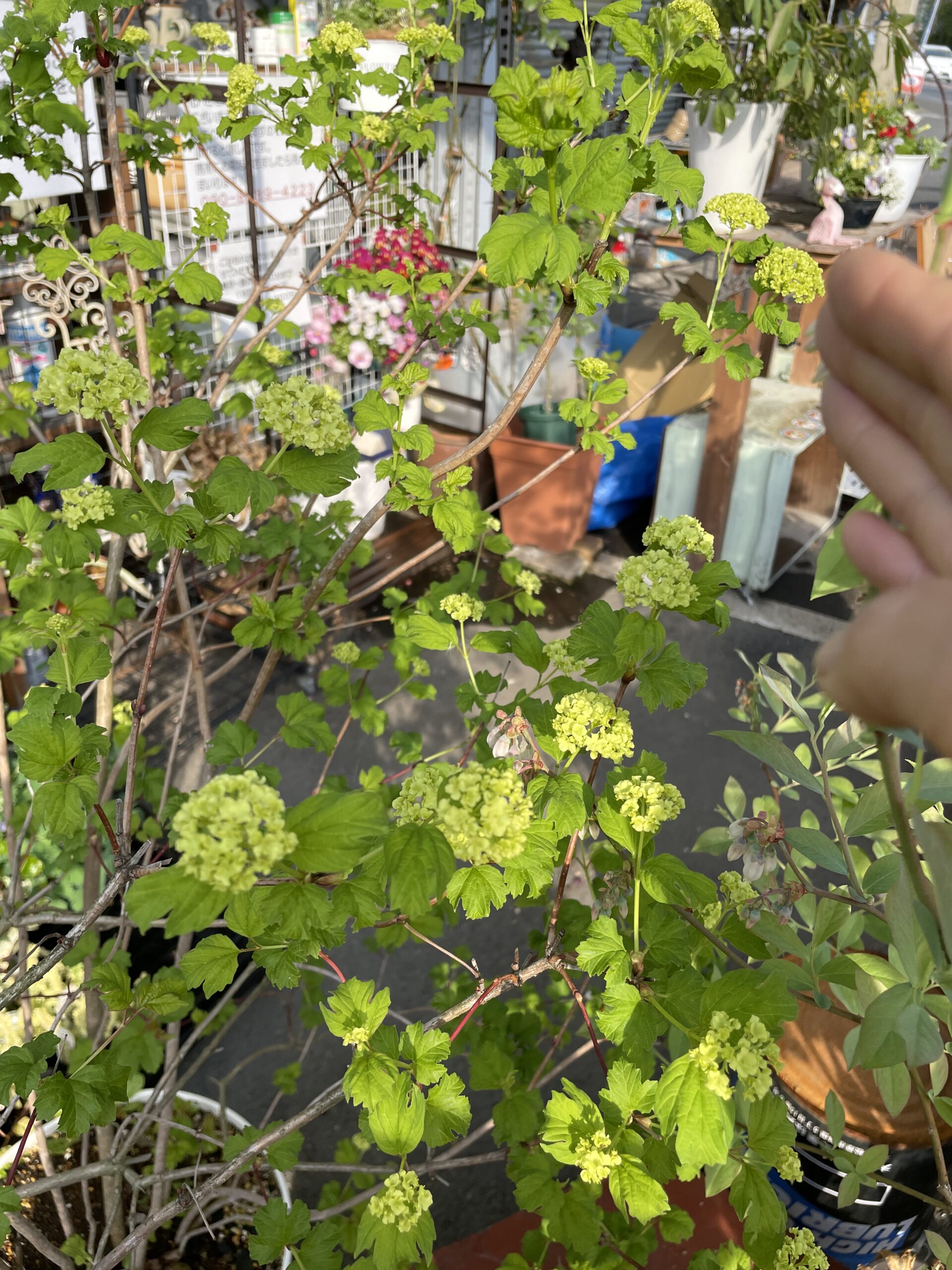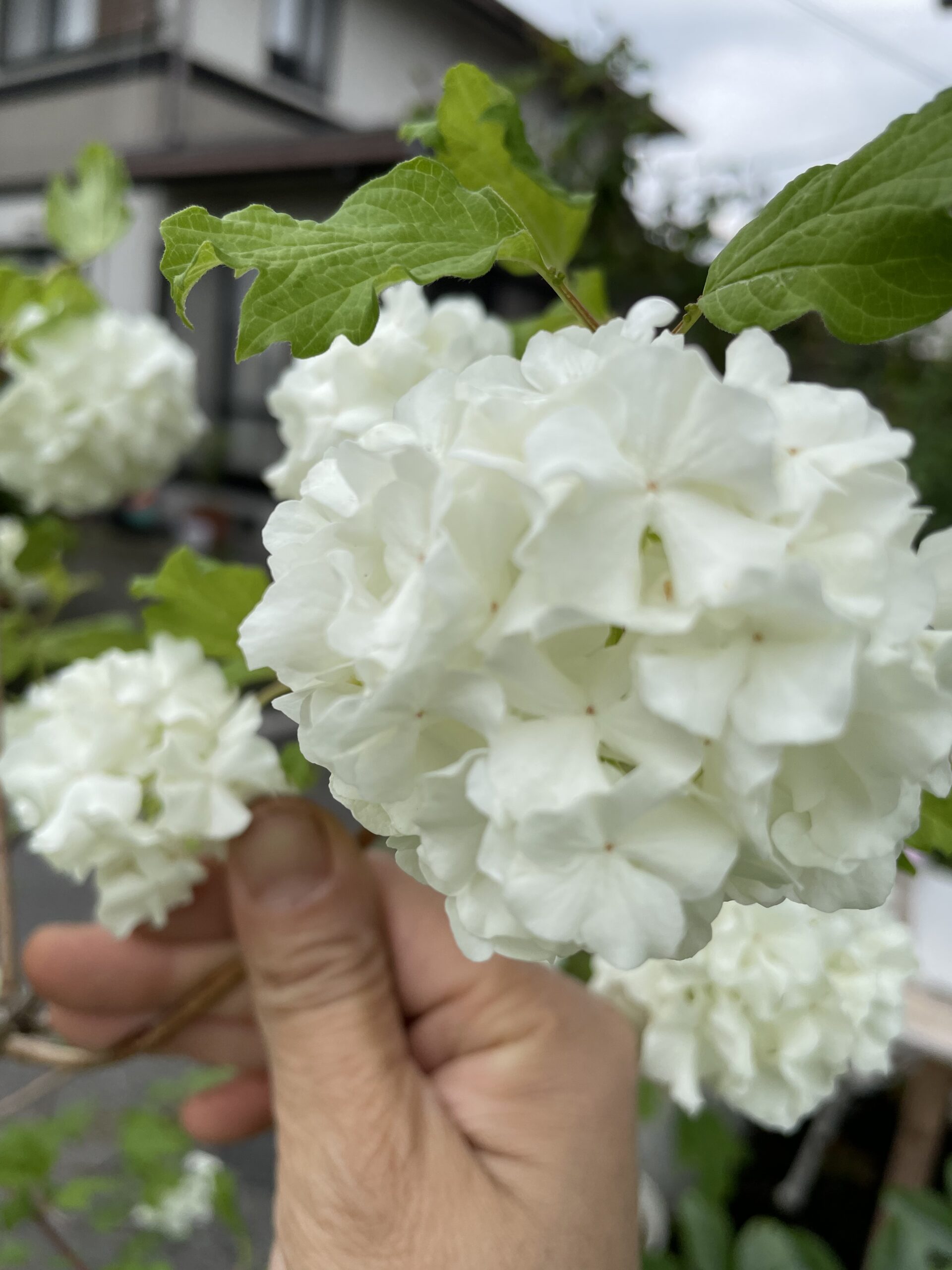 オオデマリと花がとても似ていて、間違えそうになりますが、スノーボールはカエデのように、葉っぱがミツマタの形をしているので、葉っぱをみれば、すぐに見分けることができます。