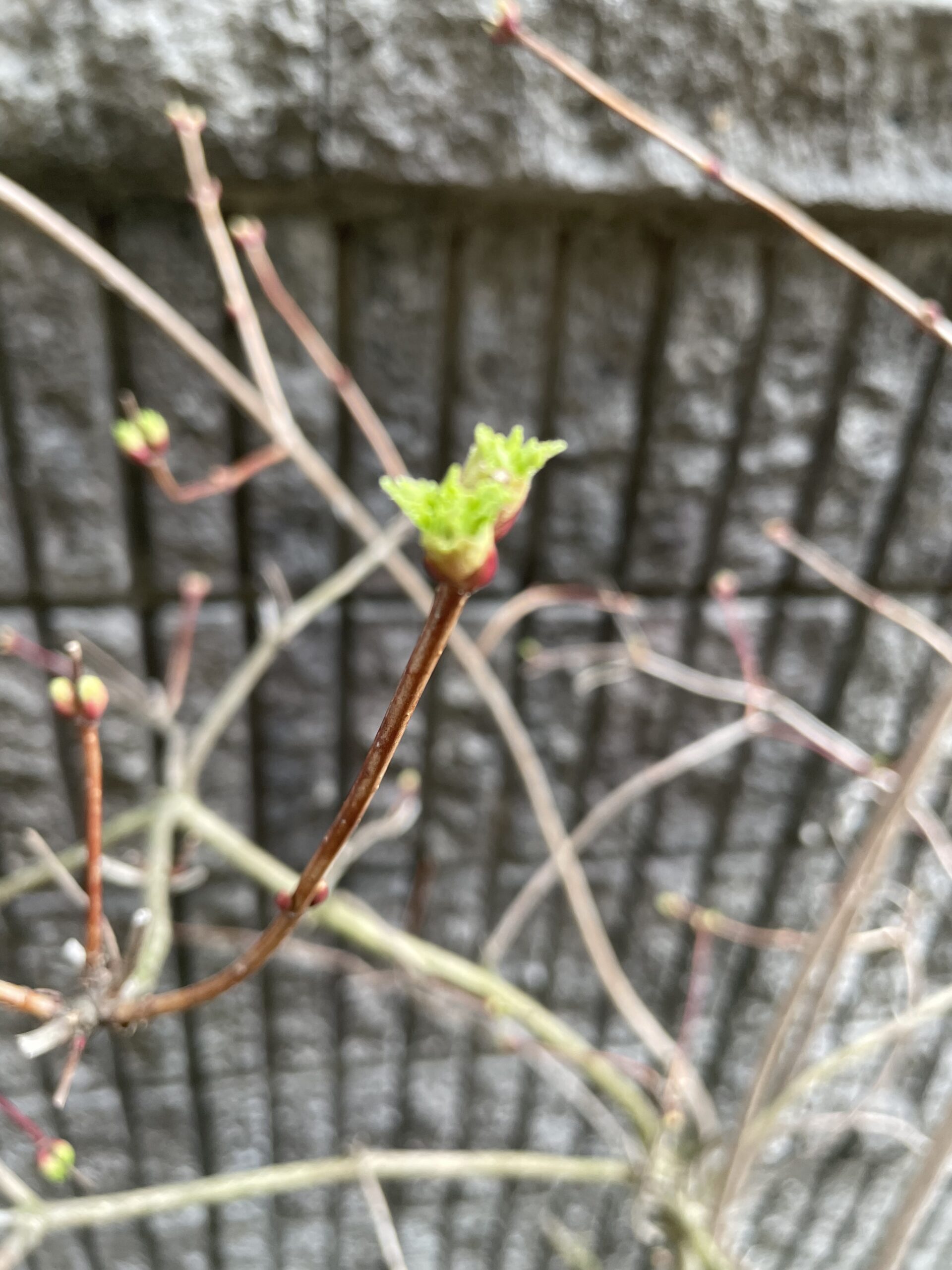 4月1日には↓ ↓ ↓ 黄緑色の葉っぱが少し顔を出し始めました。