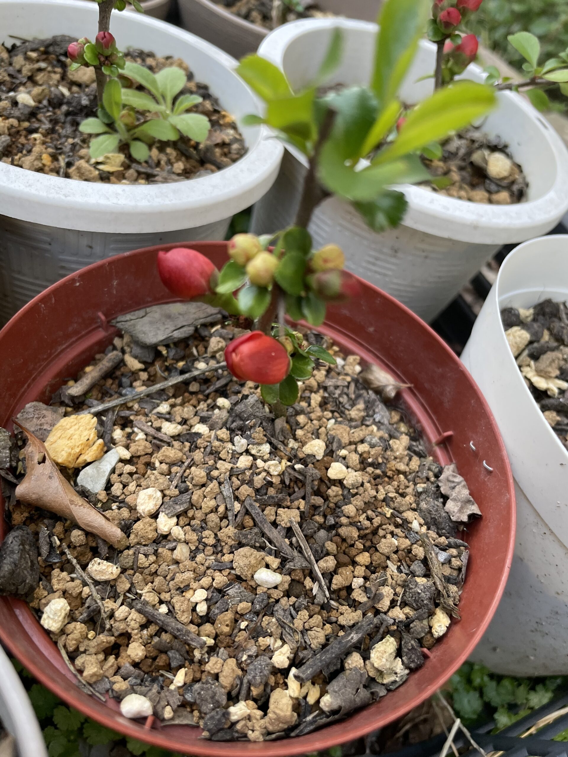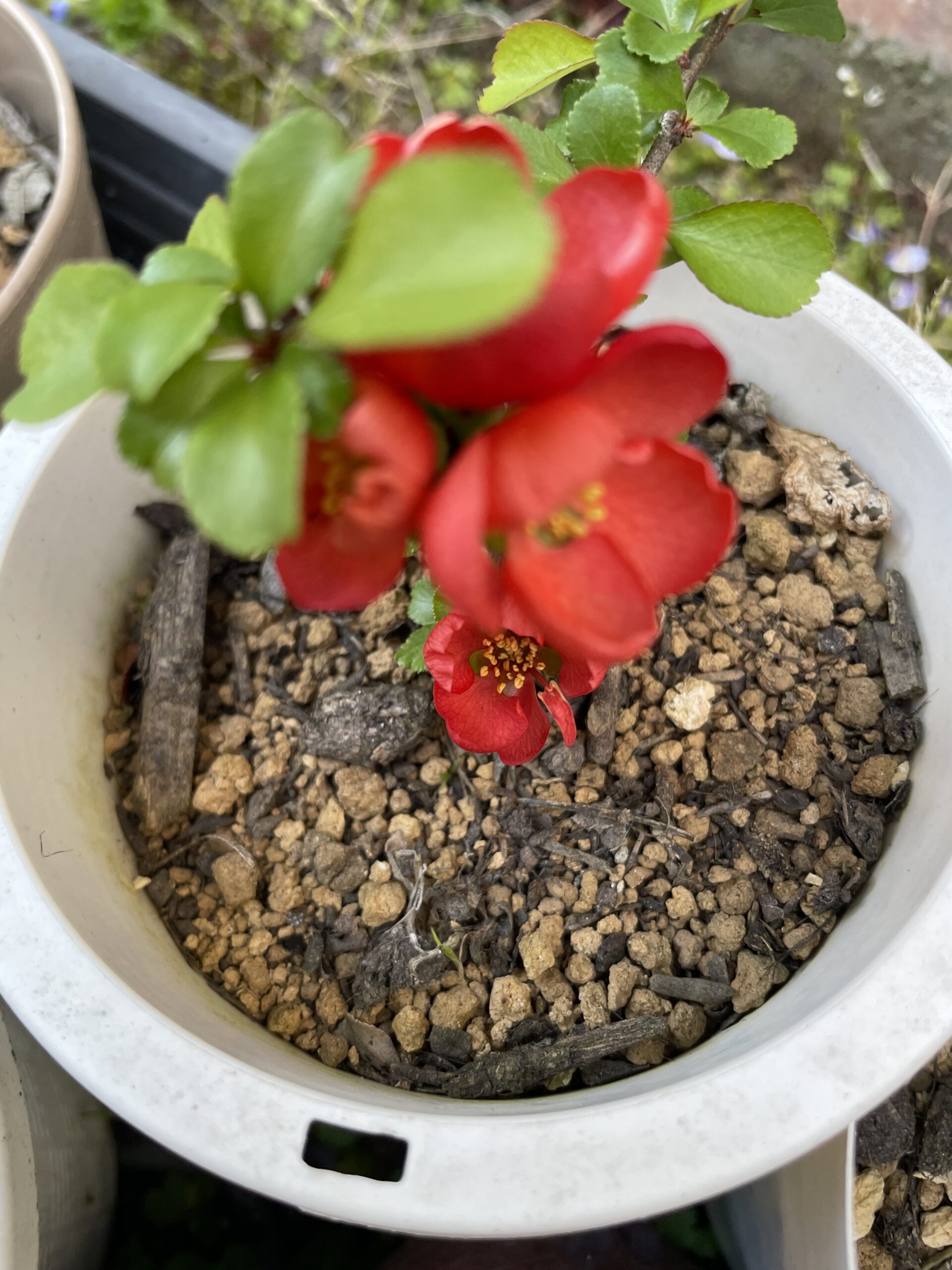 「庭にお父ちゃんが植えたボケの木があるので、一緒に潰してしまうのは悲しい~、庭植えから鉢植えに植え替えて~」