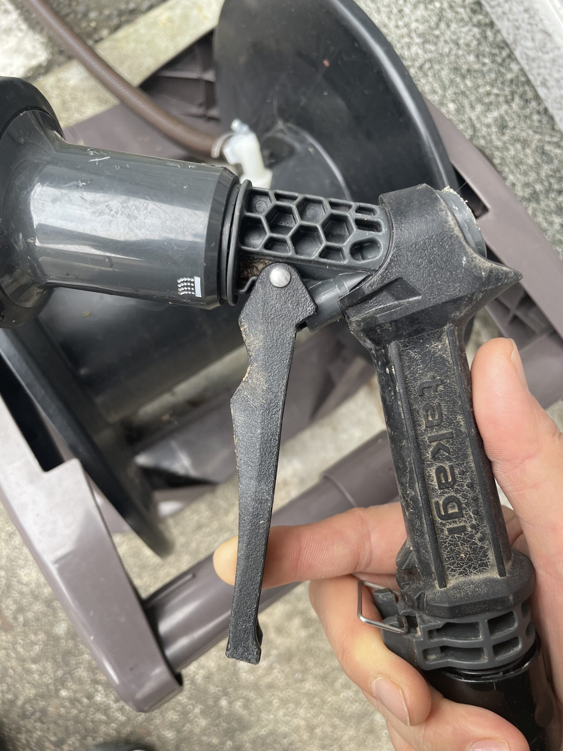 こちらはTakagi(タカギ)のノズルです。水の出方が均一で、握り方次第で、水流を強くも弱くもできます。👇👇👇