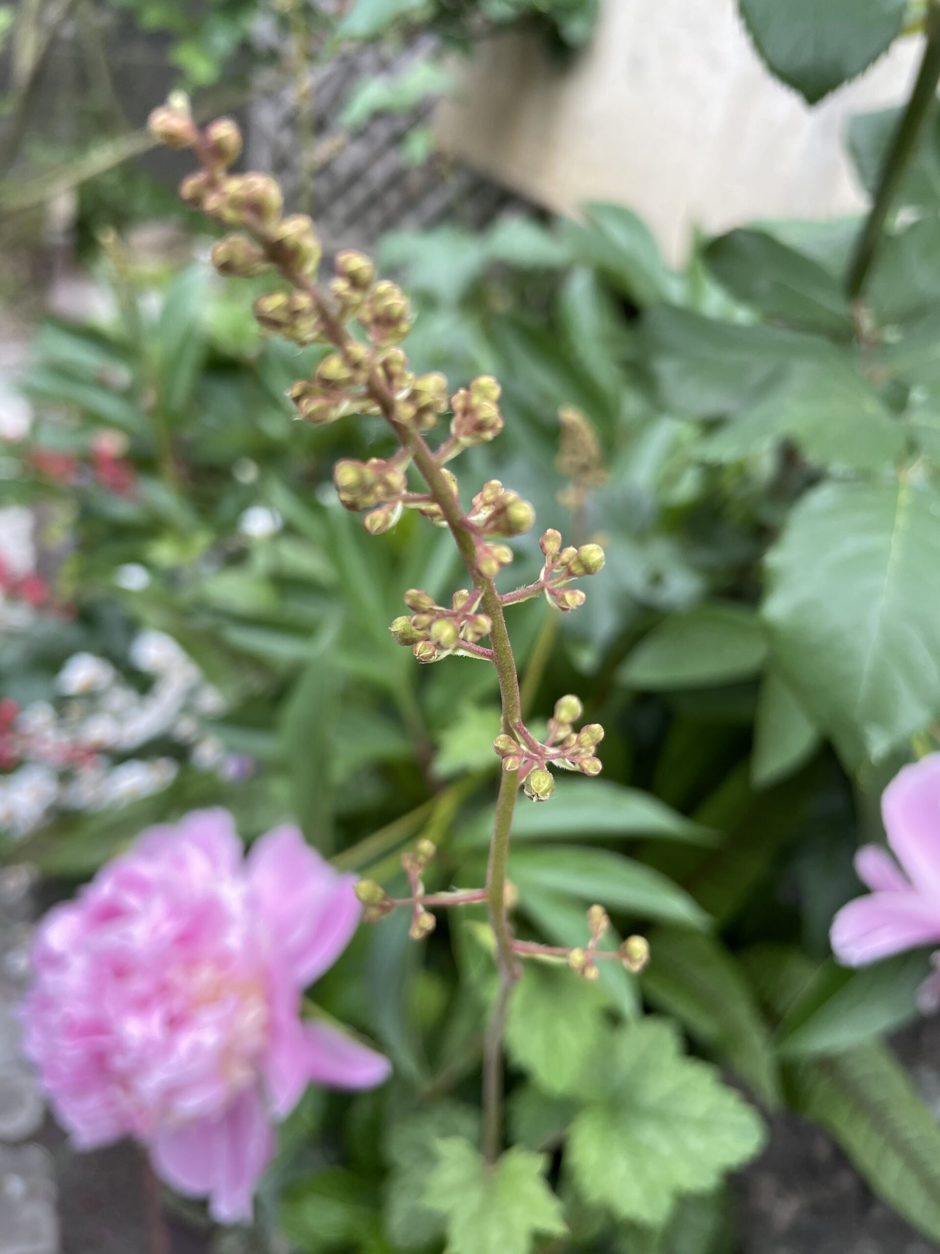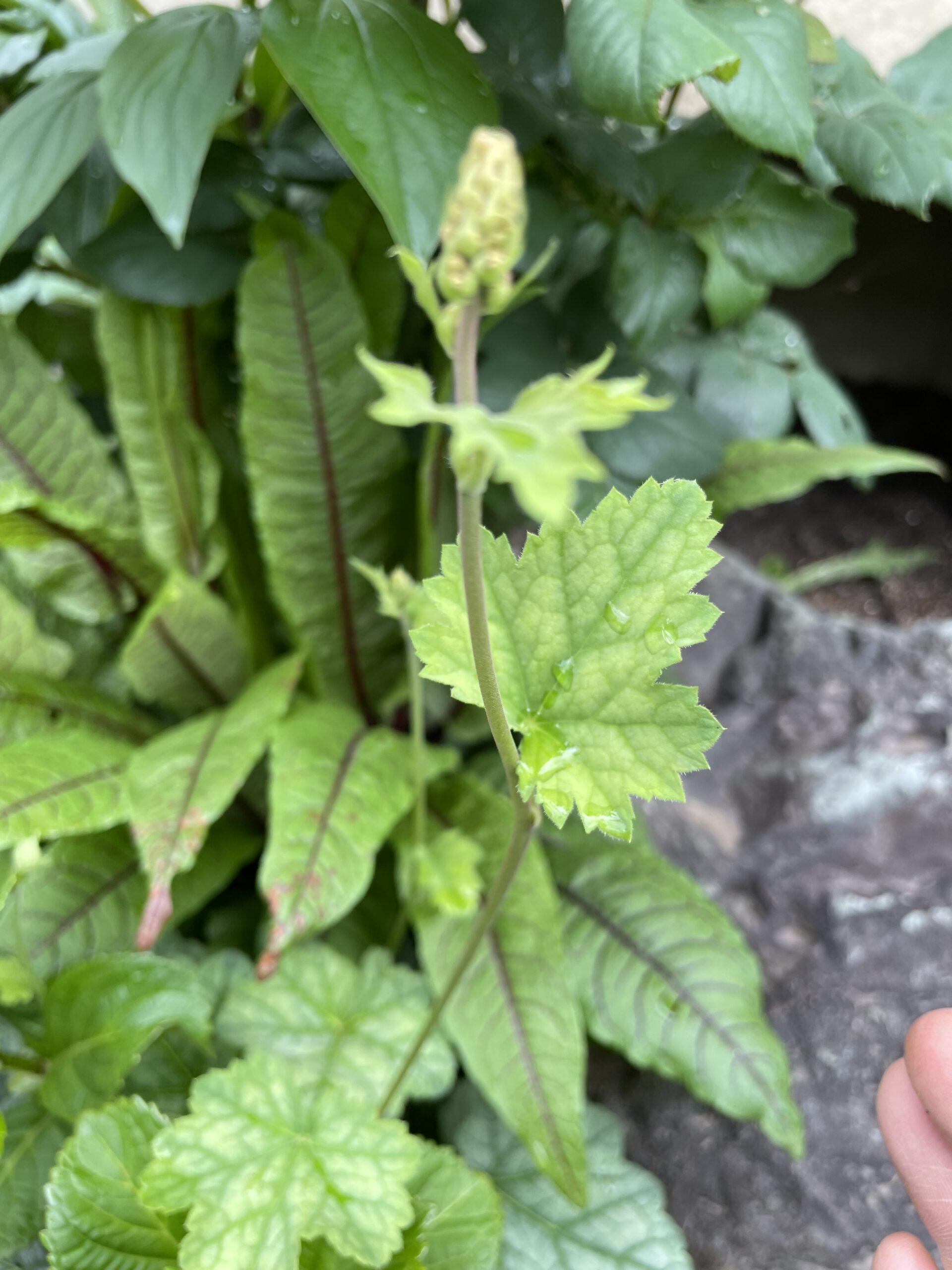 5月1日の様子↓ ↓ ↓上の写真の右側の濃い方のヒューケラは春は黄緑色の葉っぱです。葉脈がとてもきれいです(≧▽≦)花はもう少しといったところです😊