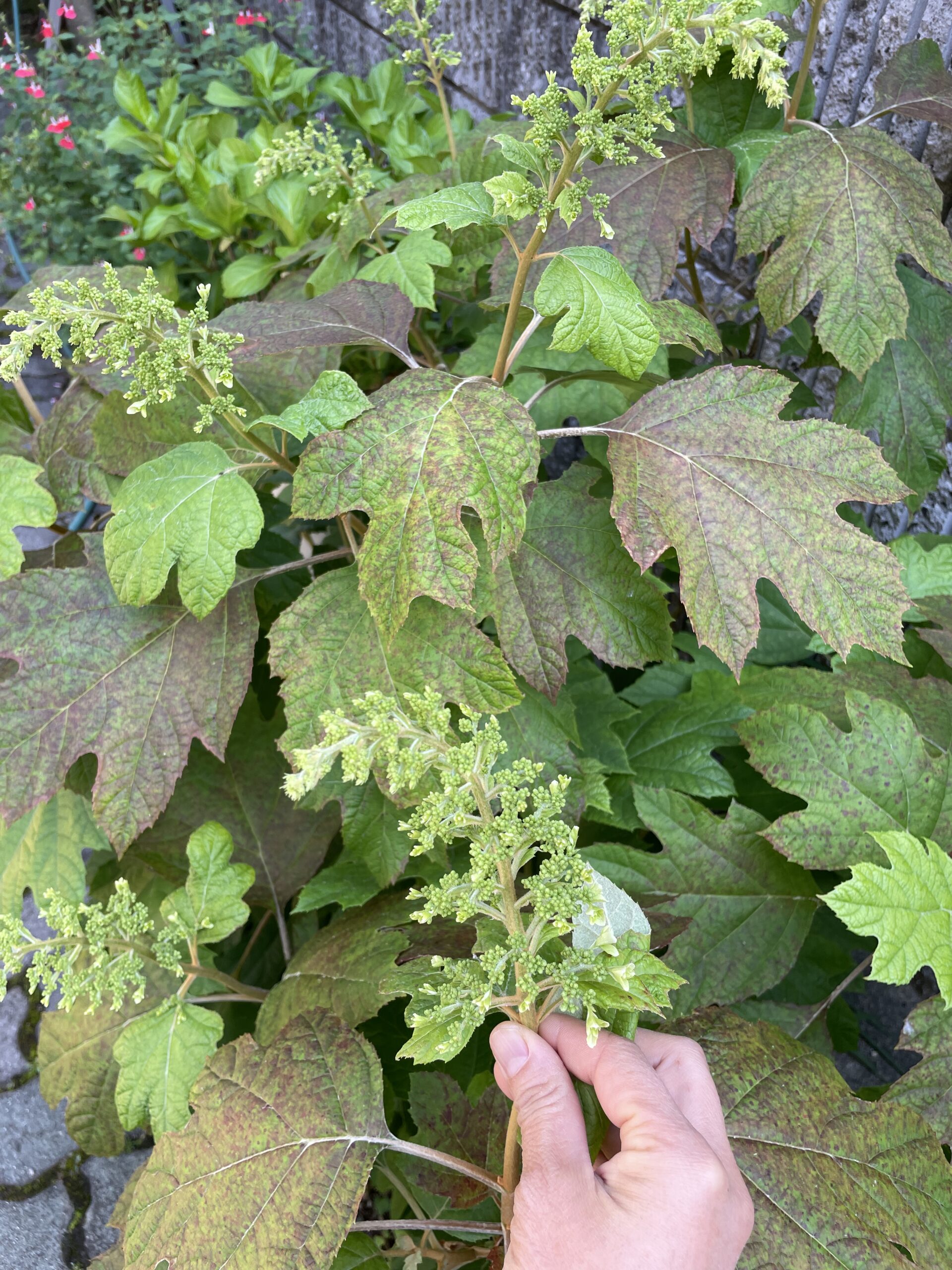 カシワバアジサイは生育旺盛で、樹高はそれほど高くなりませんが、