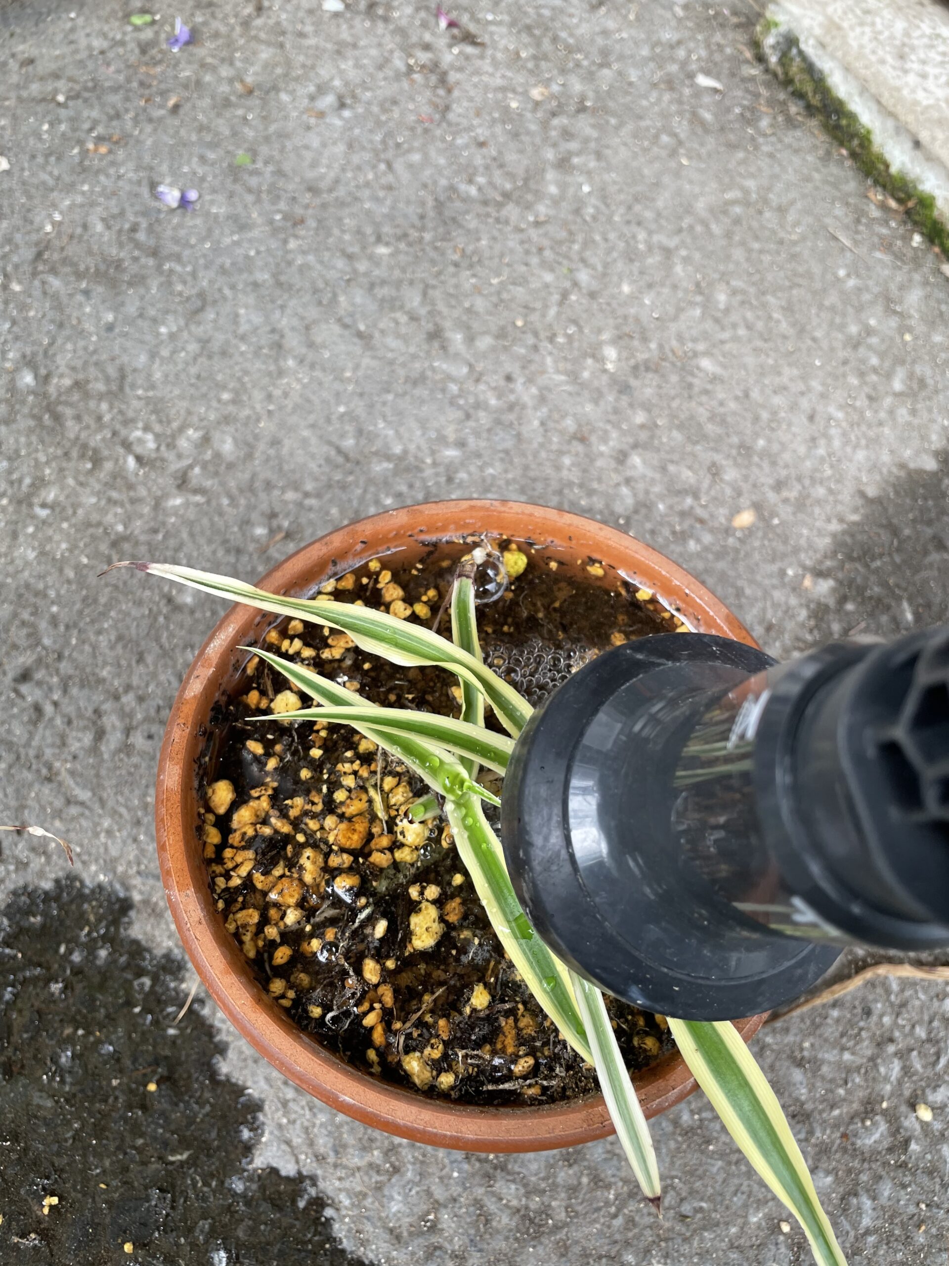 なぜかといいますと、ホースでの水やりだと、水の勢いが強すぎて、根っこまで水がいきわたらず、上の土だけが湿って、しかも勢いが強いので土が散乱してしまい、根っこがむき出しになることもあり、もー全然よいことがないです(-_-;)