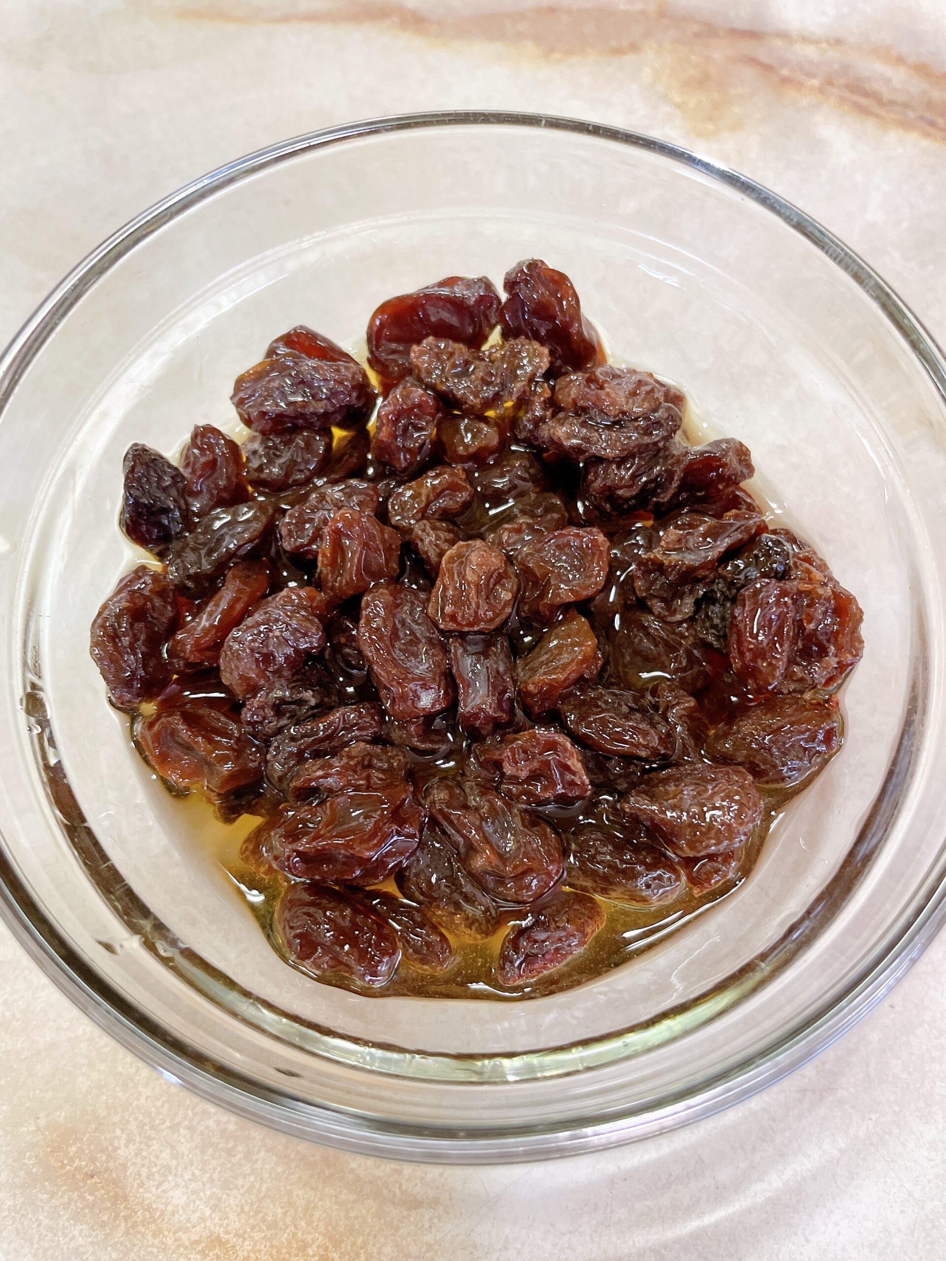 レーズンがラム酒にまんべんなくつかるようにしてね❗