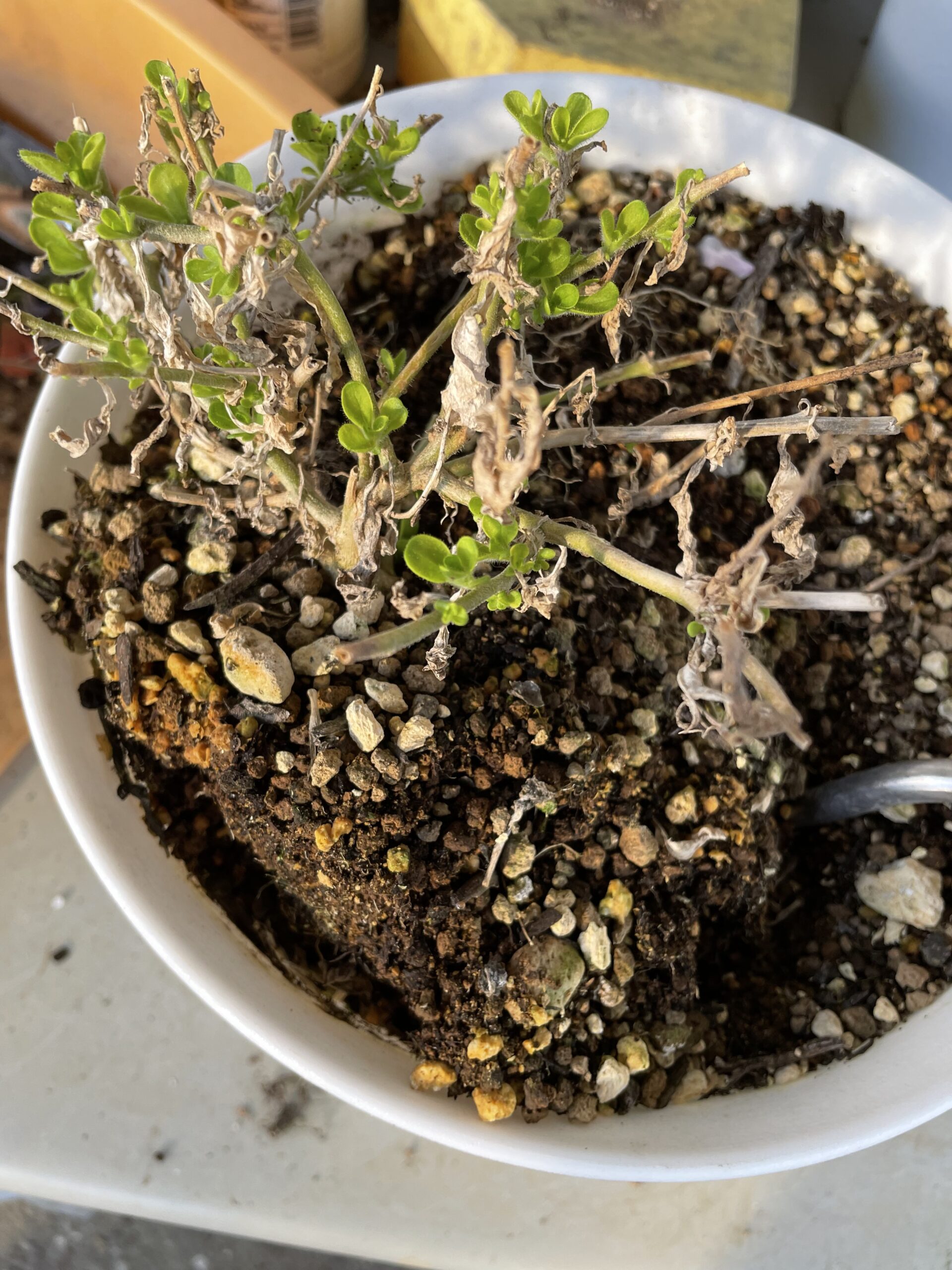昨年植えたサフィニアの株が、寒い冬を乗り越え、冬越しをしてくれました(*^▽^*)
