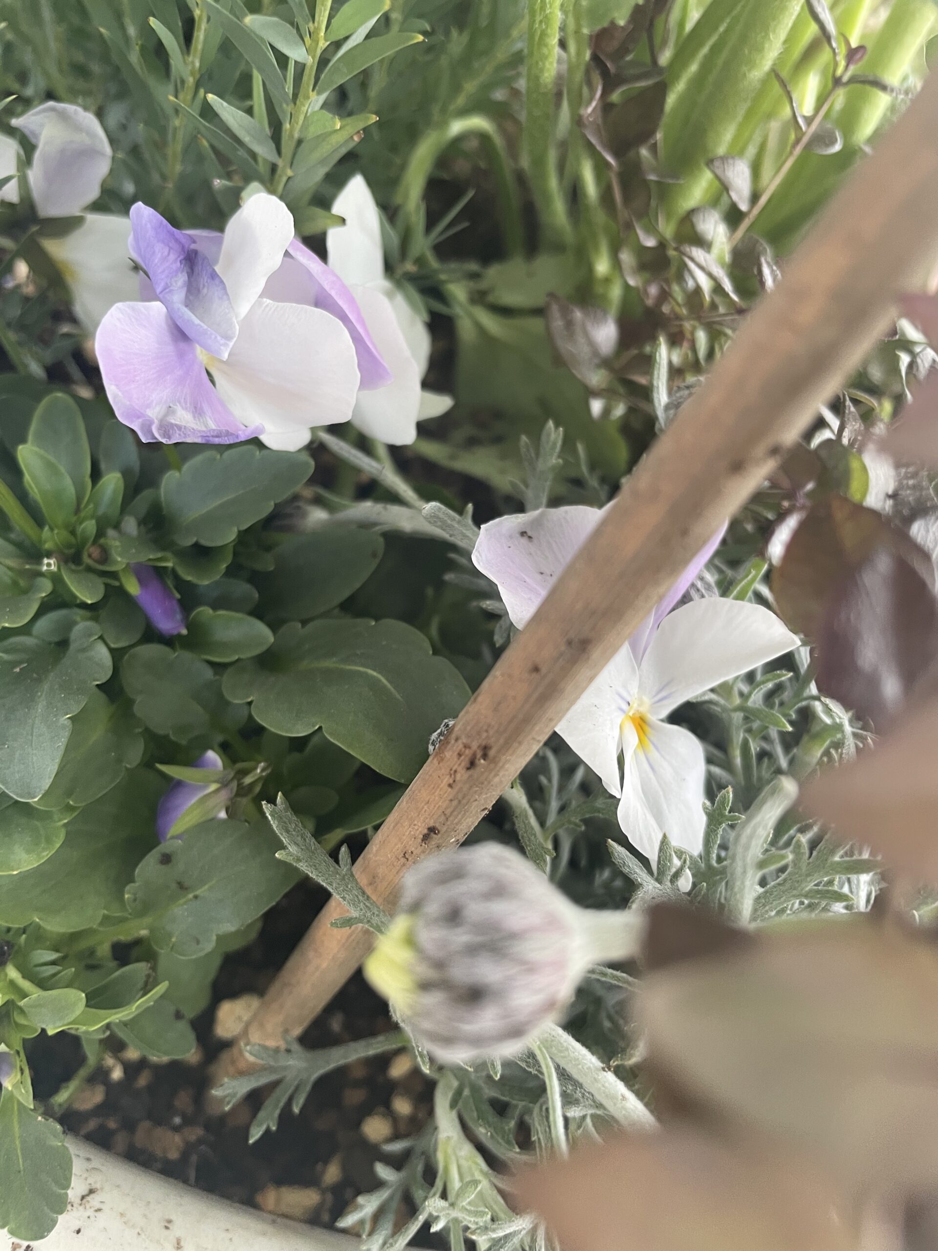 寄せ植えで土を入れた後に菜箸で土が満遍なくいきわたるように、隙間に土を落としていく作業に使います❗