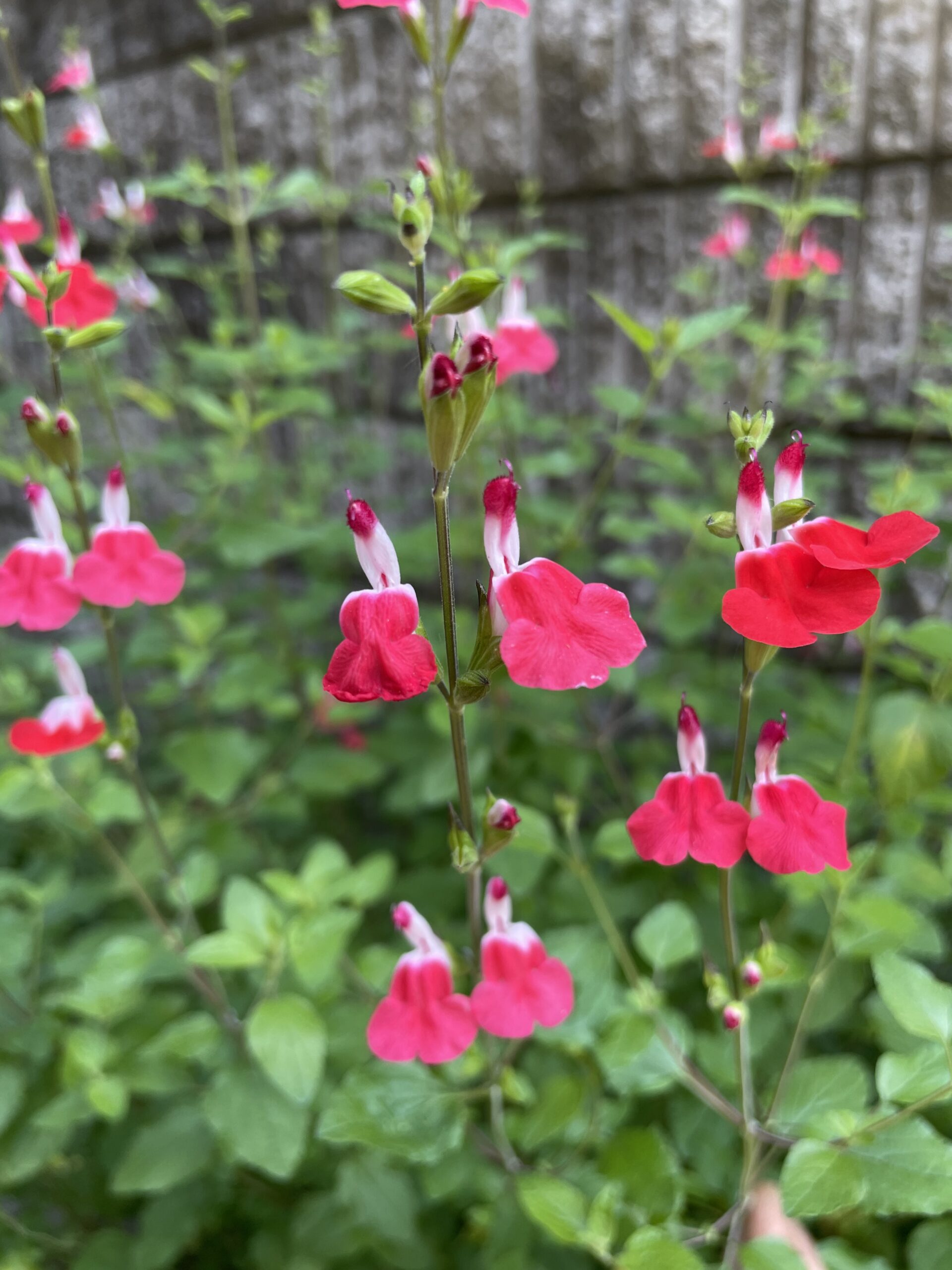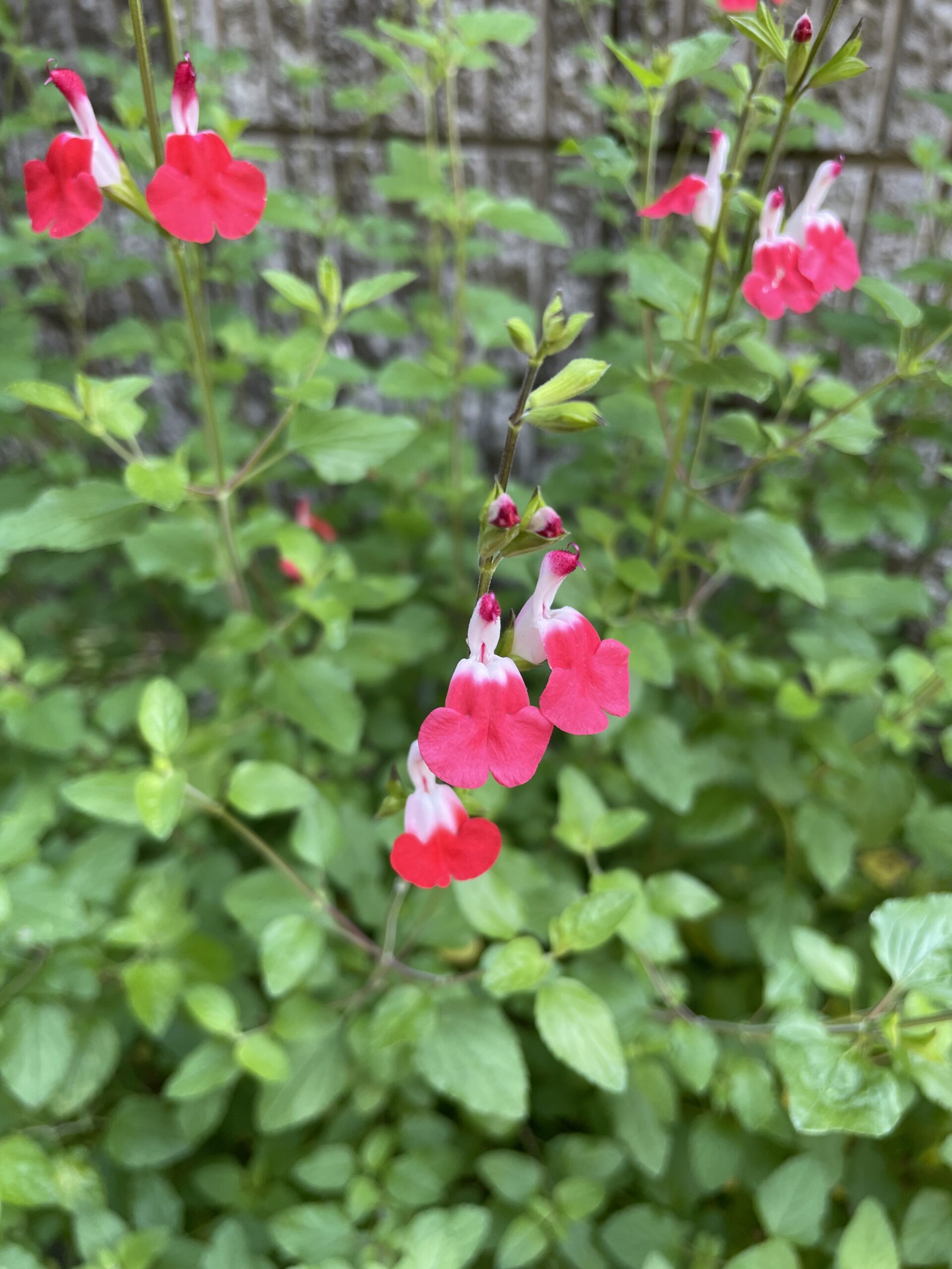 セージといえばブルーやムラサキの花をイメージしますが、チェリーセージは赤系や赤に白といったかわいらしい花弁が特徴です。