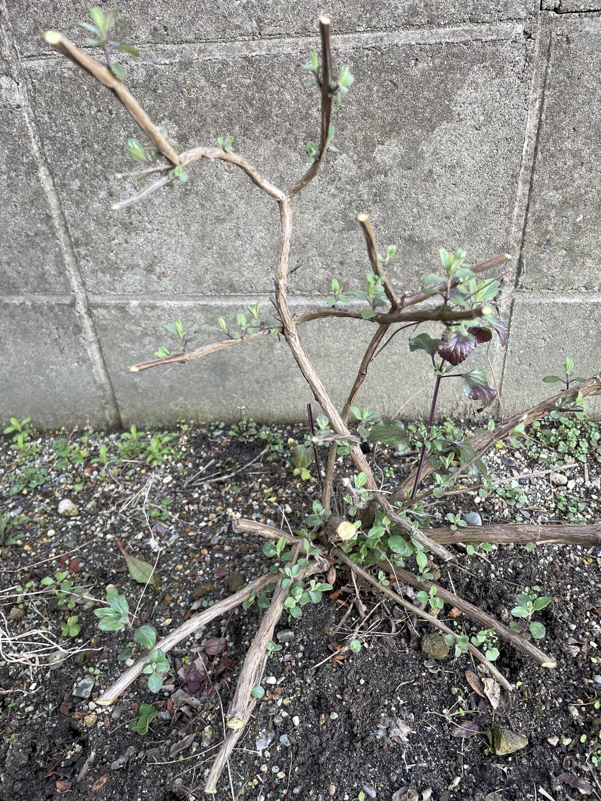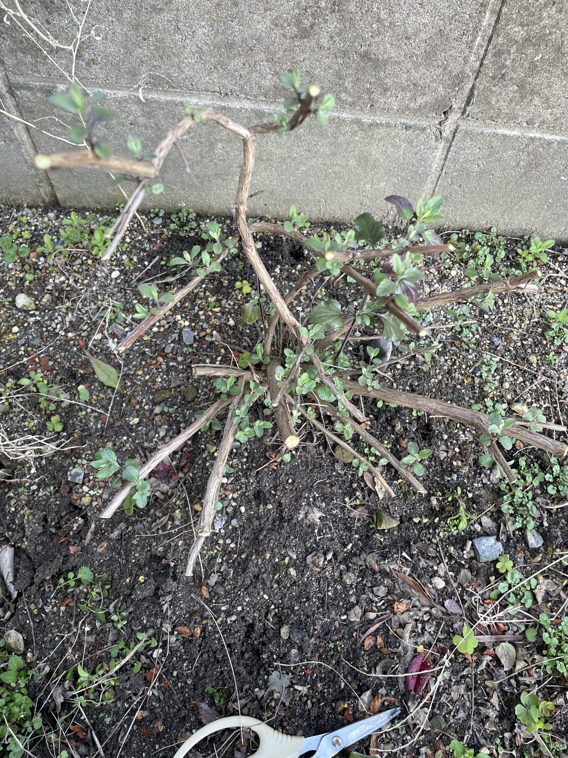 何年もたった古株は年々大きくなりますので、大きさをコンパクトにするためにも、私は3月くらいにバッサリ切り戻しをします。