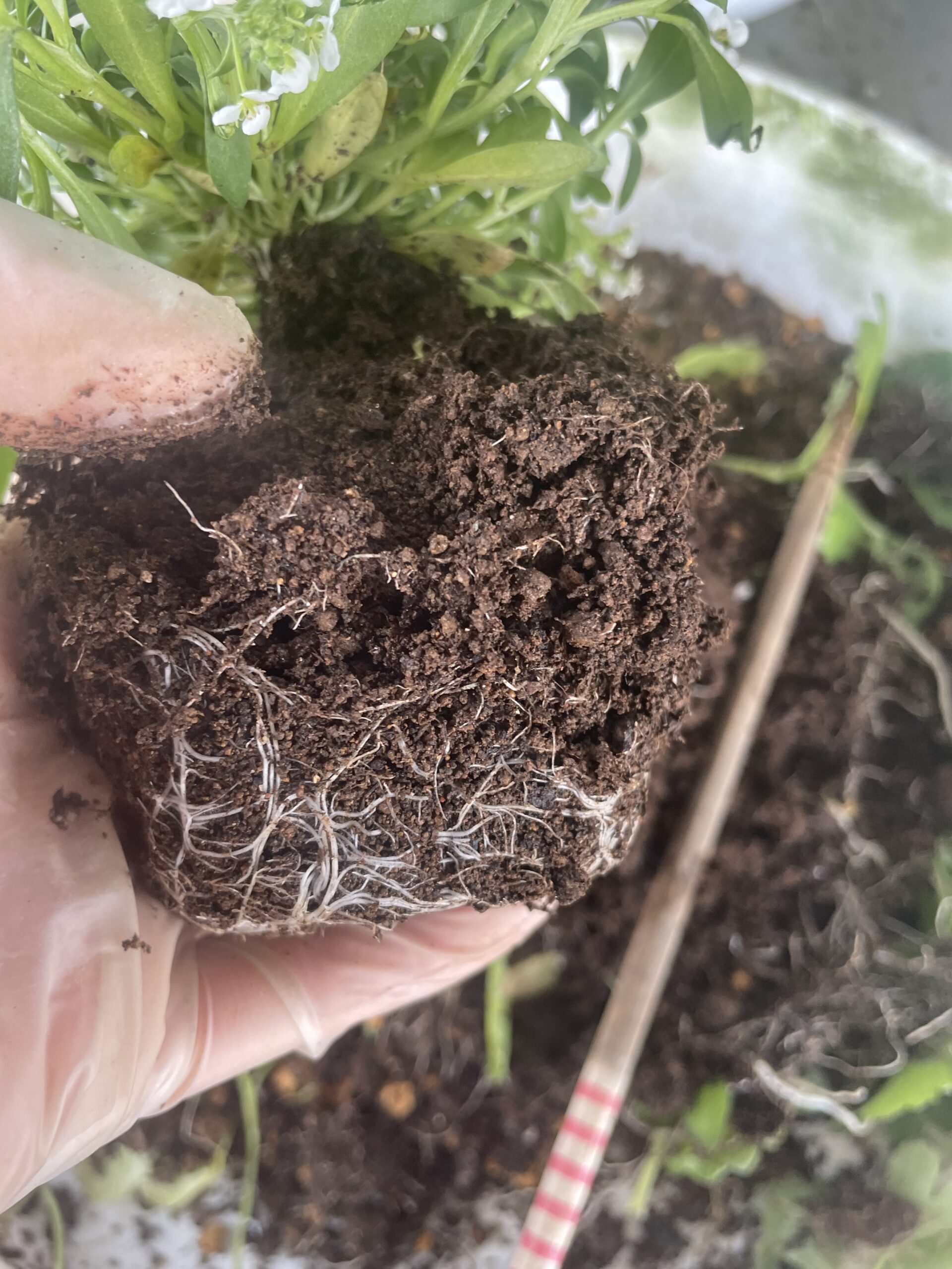 こちら👇👇はポットの中で根がぎっしり詰まっていたので、底と周りを結構ほぐしました。