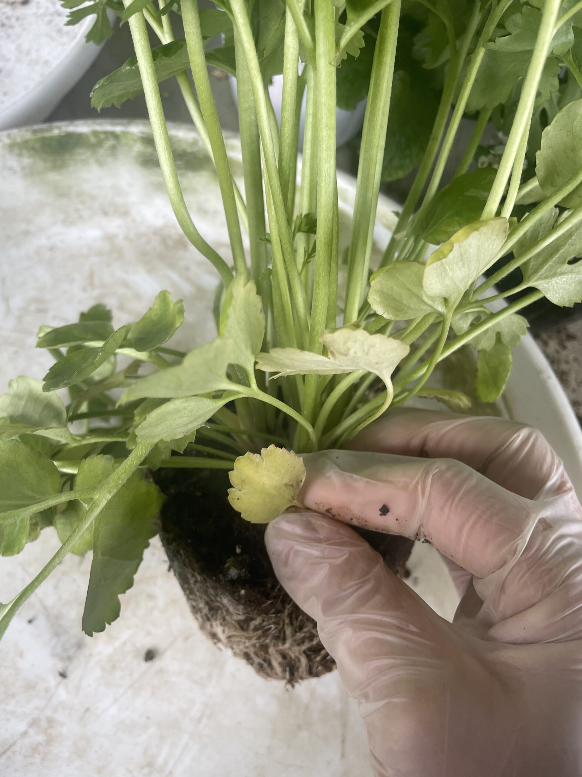 下葉が枯れていたり黄色くなってしまった葉っぱ等は取って、枯れた花柄が付いている場合も茎ごと取り除いて綺麗な状態にしてから植えます。